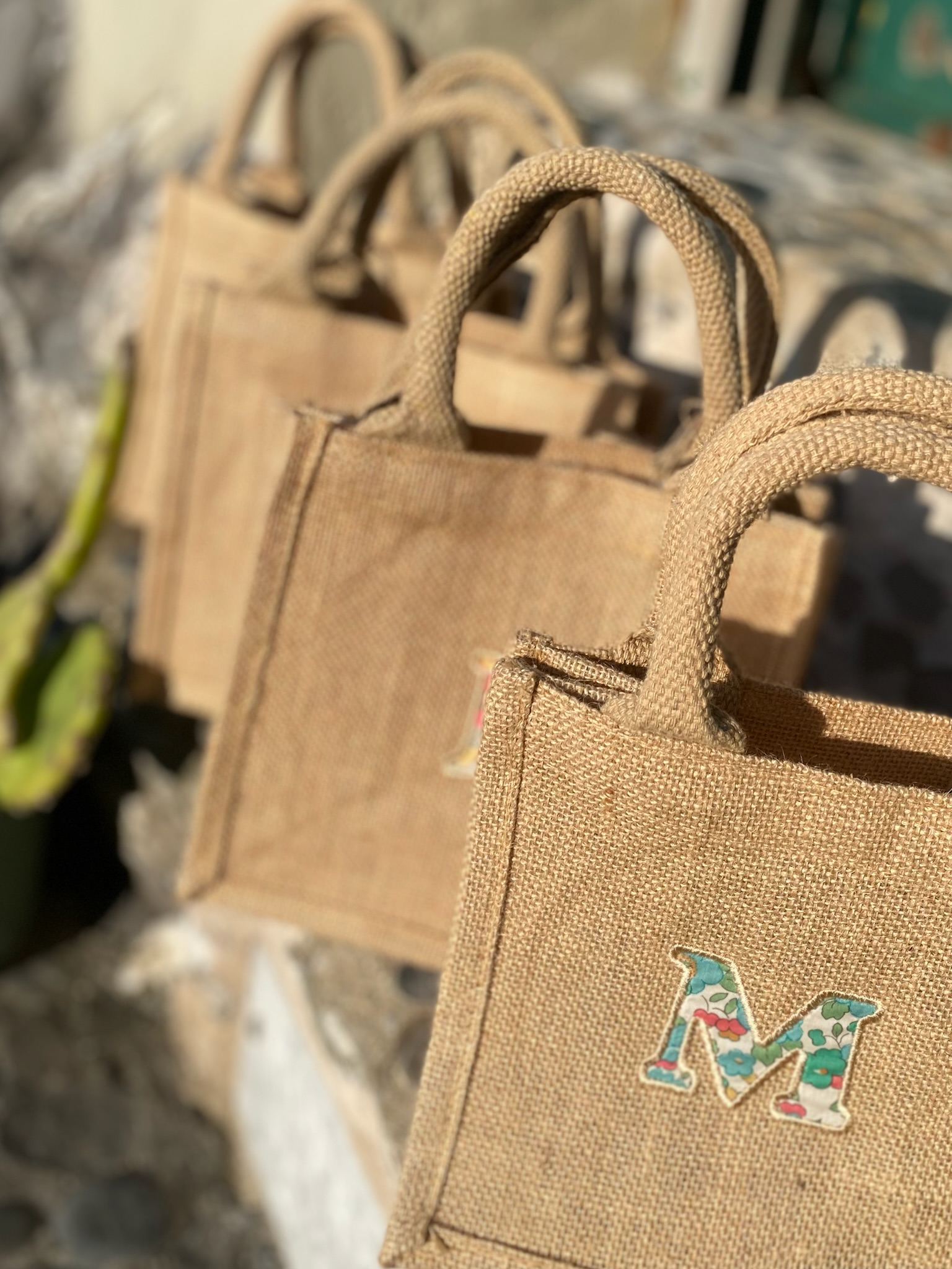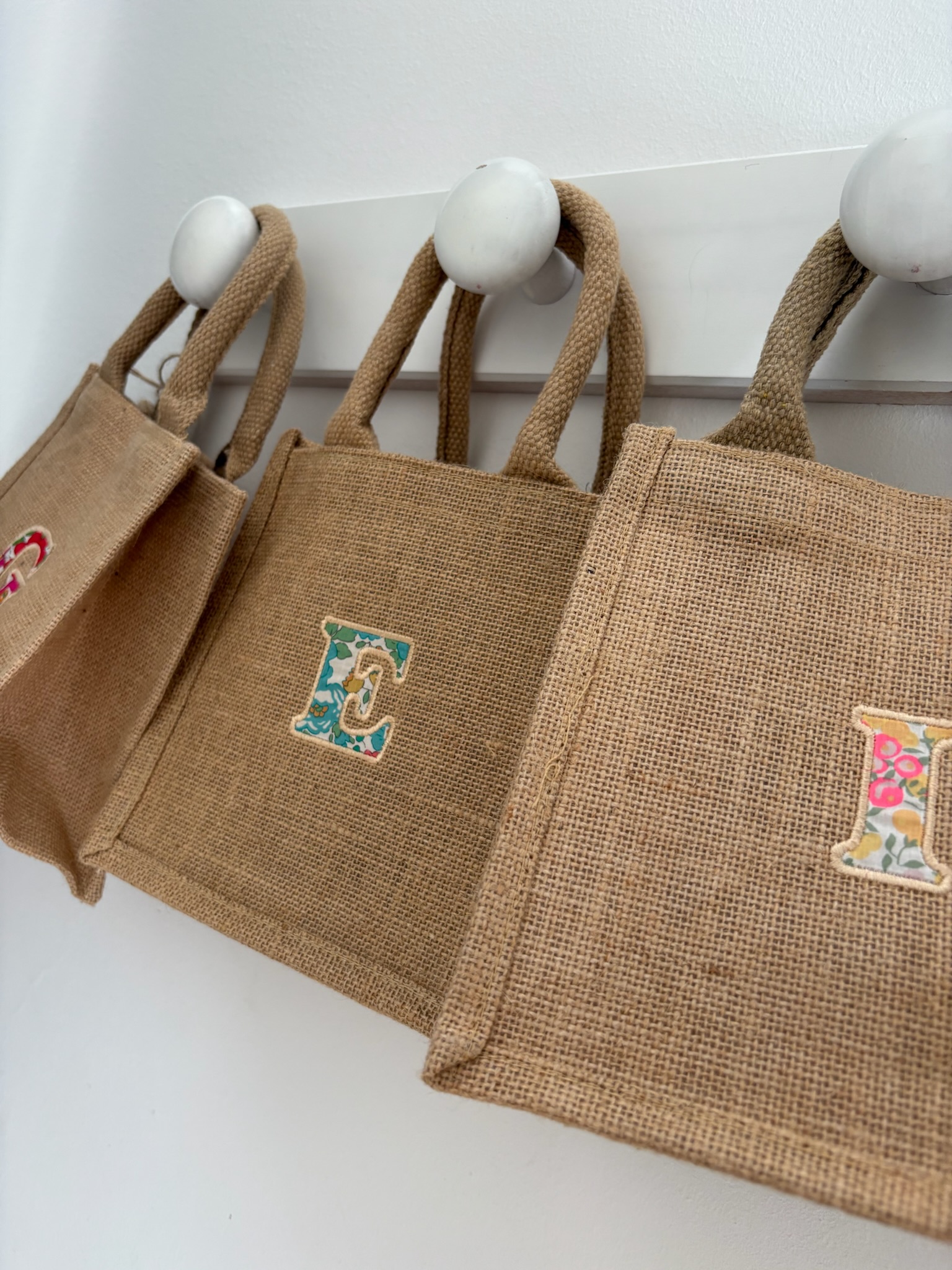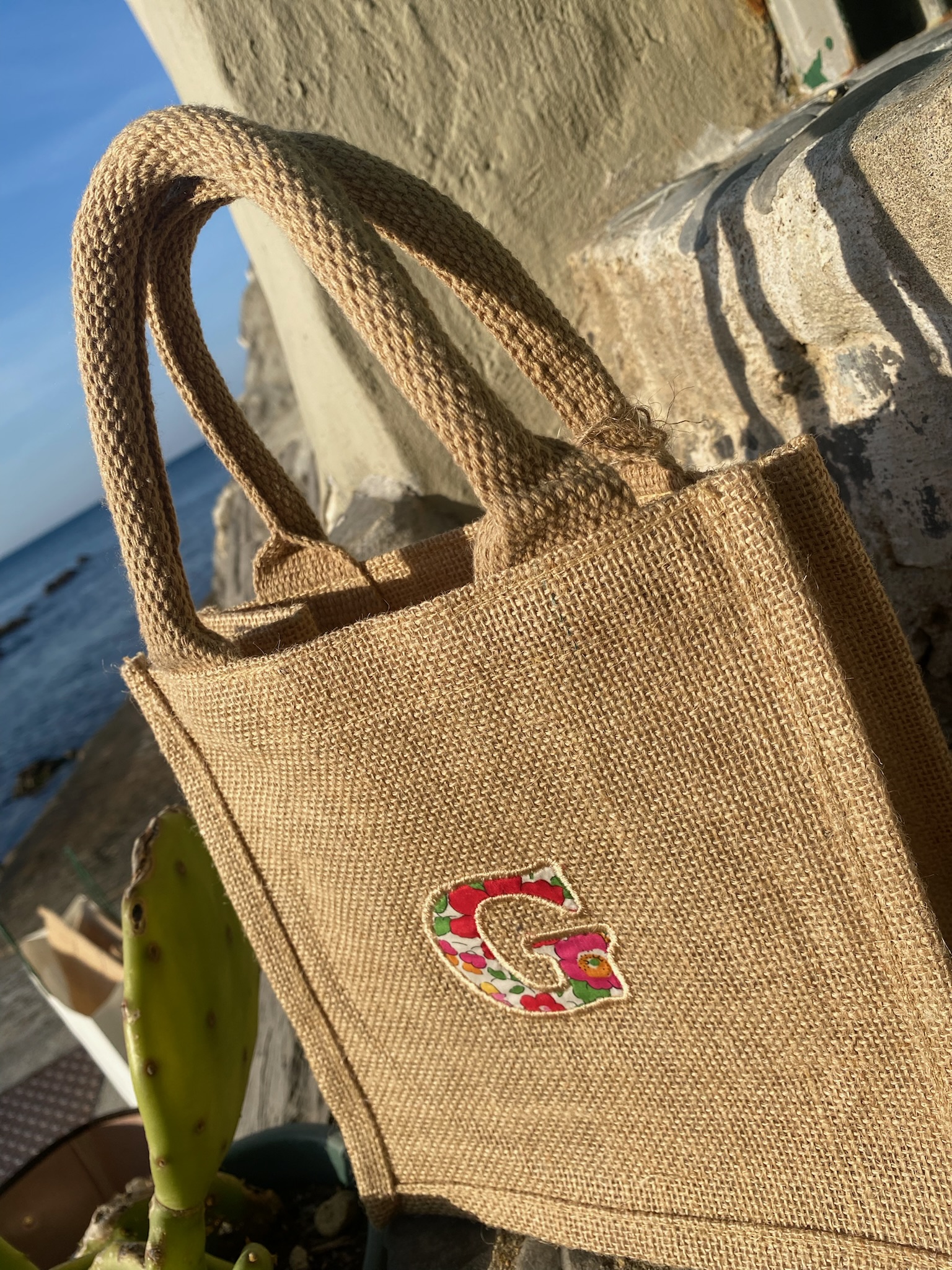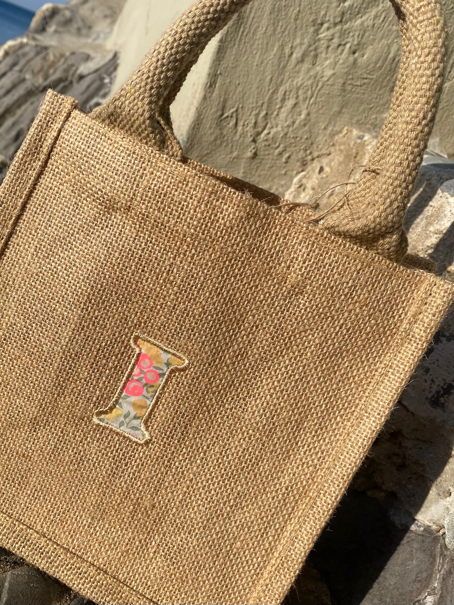 Piccola ma capiente, questa borsa in juta plastificata all’interno, è perfetta per il mare. Personalizzala con la tua iniziale o quella di qualcuno a cui vuoi bene. Puoi scegliere qui la stampa Liberty che preferisci, ed inserire la LETTERA nelle note dell’orine.